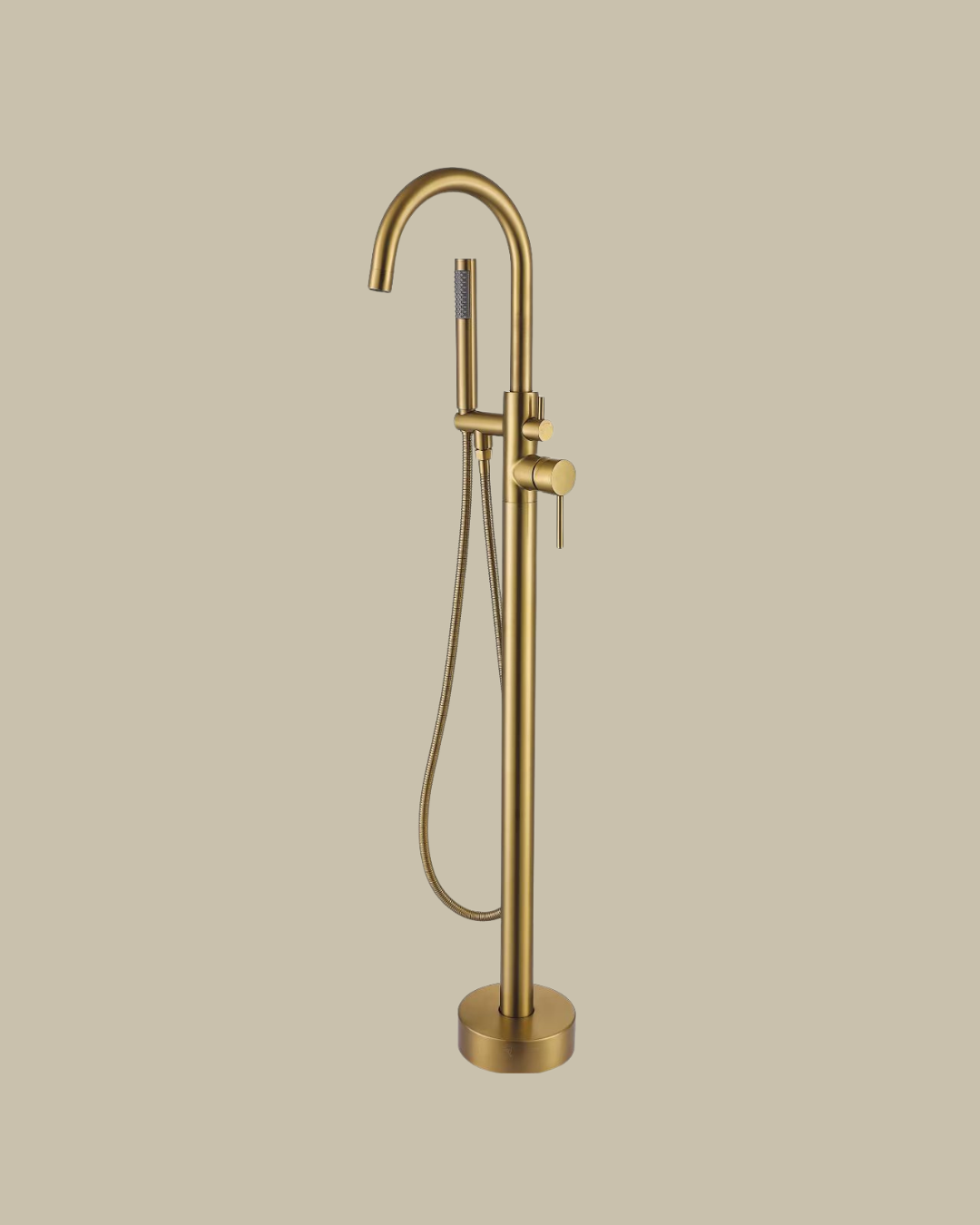 > Torneira de piso com ducha e misturador. > Acabamento: Latão. > Cor: Aço Escovado, Dourado e Preto. > Acompanha o kit de instalação.